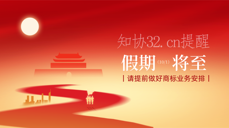 您好!十一国庆假期将至,根据国家知识产权局商标局发布的最新通知,中国商标网及商标网上服务系统将于国庆期间进行停机维护。为确保您的商标业务不受影响,构卓特此提醒您提前做好节前业务安排。