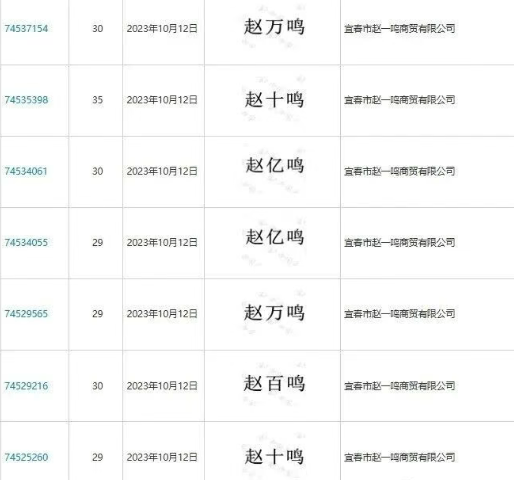 据了解,品牌名赵一鸣,是创始人赵定的儿子的名字。有趣的是,构卓查询了解到,出于商标防御性布局,赵一鸣不仅注册了“赵一鸣”商标,还申请了很多近似商标,包括“赵十鸣”“赵百鸣”“赵万鸣”“赵亿鸣”等!