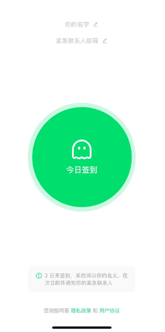 据介绍,该应用界面和功能设计也非常简单直白,只有“设置名字”“今日签到”“紧急联系人邮箱”三个功能。是专门为独居人群打造的轻量化安全工具,用户需要设置紧急联系人并签到,若连续多日没在应用内签到,系统将于次日自动发送邮件告知紧急联系人。